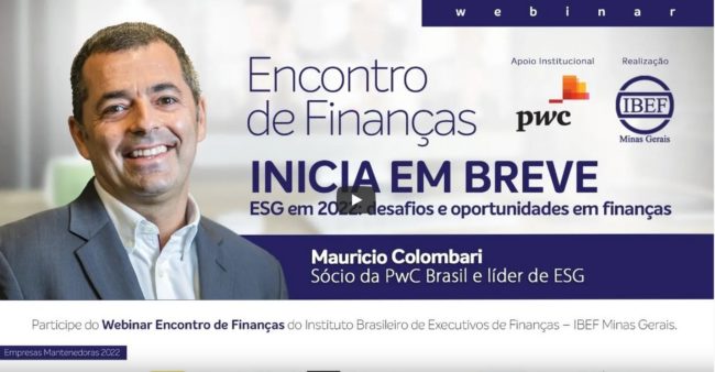 Data: 15.02.2022 Tipo de Evento: Palestra – Webinar Assunto: ESG em 2022: desafios e oportunidades em Finanças Palestrante: Mauricio Colombari, sócio da PwC Brasil e líder de ESG Local: Online Realizador:…
