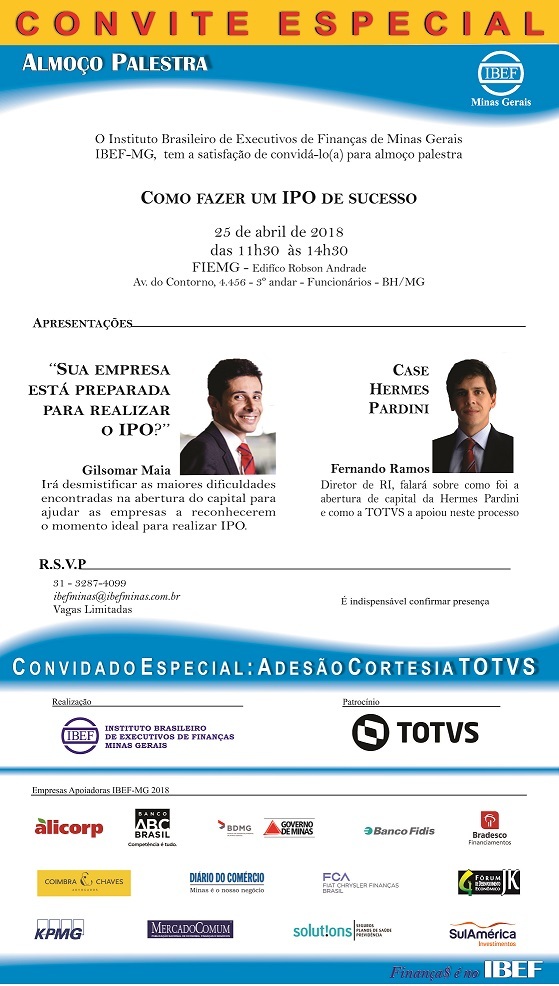 O IBEF MG promoveu no dia 25 de abril de 2018, na sede da Fiemg, o seu primeiro encontro de 2018. O tema do Almoço-palestra “Como Fazer Um IPO de…