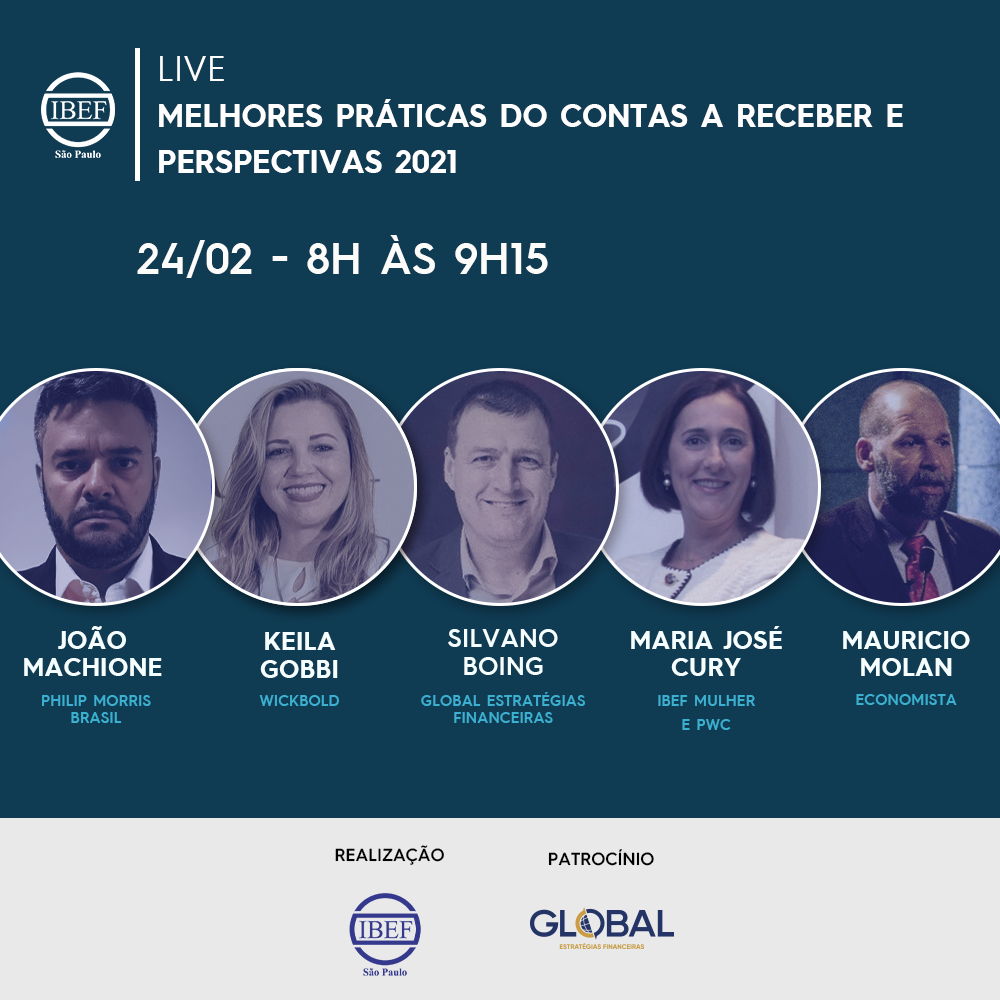 Segue convite do IBEF São Paulo, para acompanharem o webinar “MELHORES PRÁTICAS DO CONTAS A RECEBER E PERSPECTIVAS 2021”.