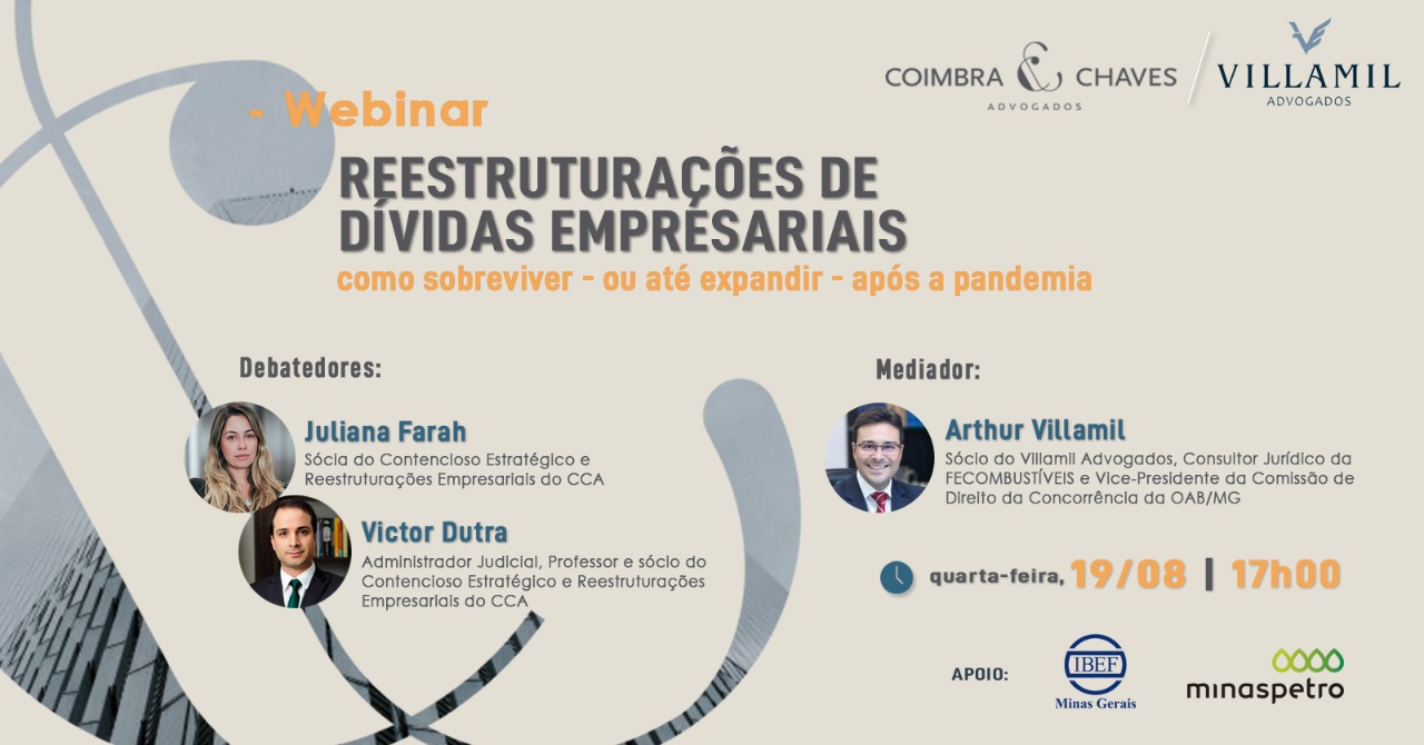 O CCA, empresa colaboradora do IBEF Minas Gerais, com o apoio do IBEF-MG e Minaspetro, convidam para um Webinar sobre as Reestruturações de Dívidas Empresariais.